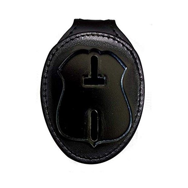Perfect Fit Shield Wallets Detroit Police Belt Clip Badge Holder with Pocket and Chain (Cutout PF187, 2.6 inches tall), Black, One Size
