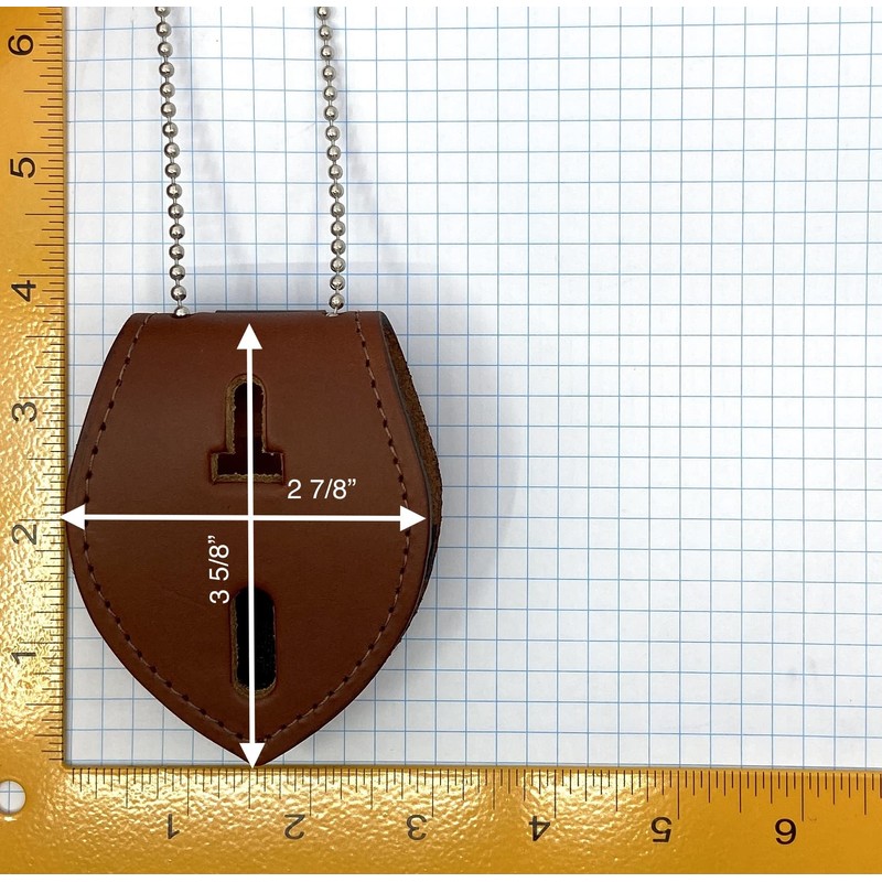 Perfect Fit Universal Teardrop Police Shield Shaped Badge Holder with Metal Belt Clip and Bead Chain Necklace, Hook and Loop Closure, Tan Leather