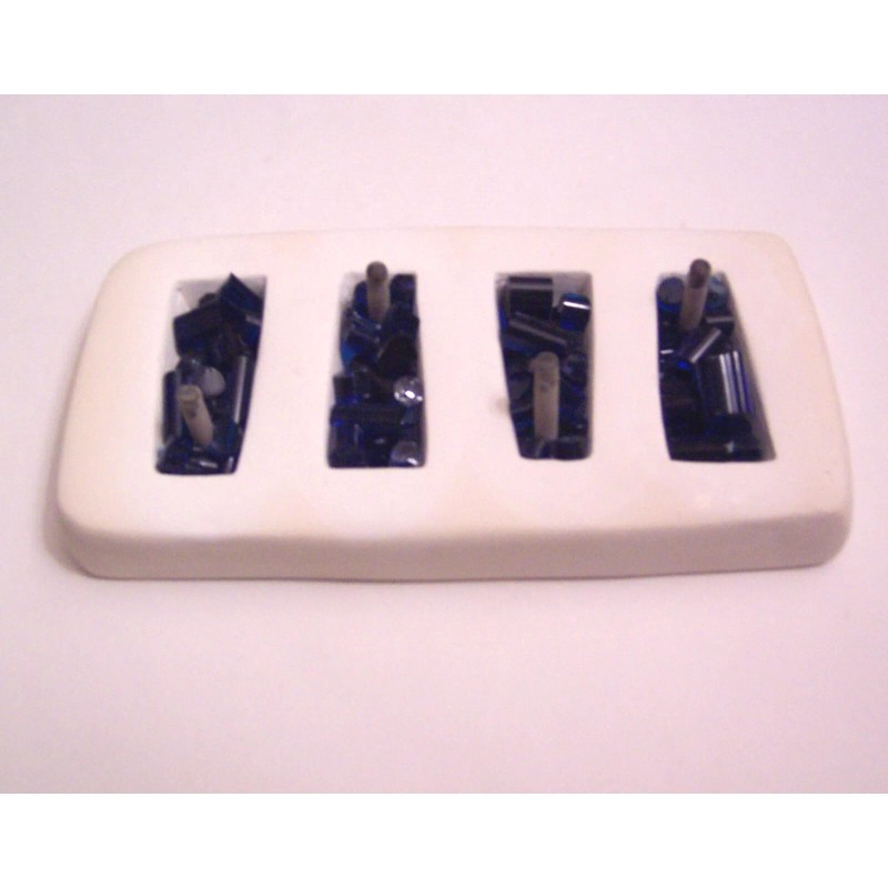 Four tapered rectangle shaped cavities are approximately 3/4" to 1/2" by 2" and 1/2" deep.