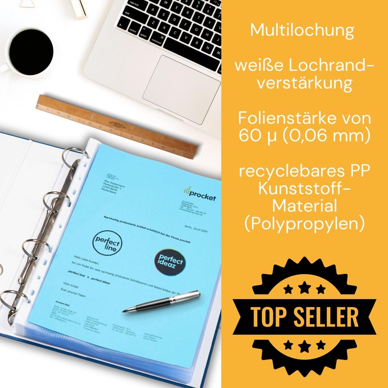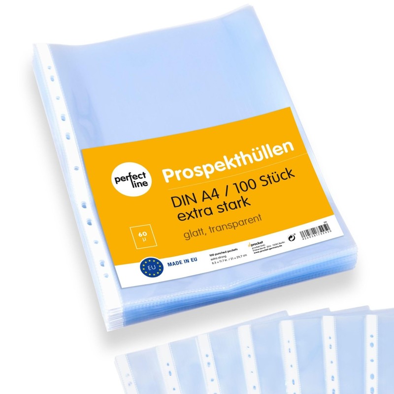 perfect line perfect line - 100 Prospekthüllen DIN-A4, Klarsichtfolien Glasklar, 60 my Stark, dokumentenecht, säurefrei