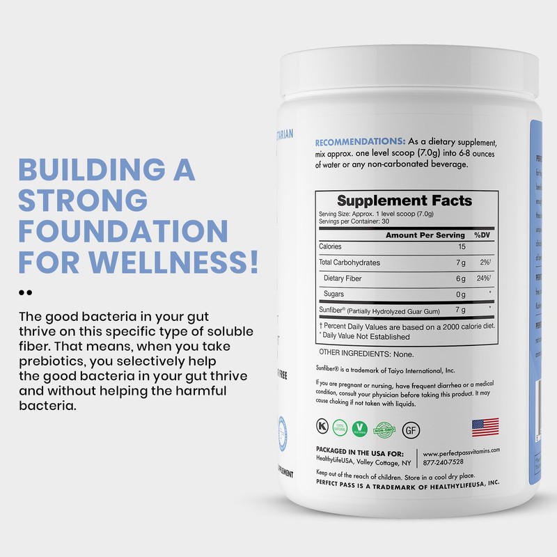 - Superior Purity in Every Scoop C Our American-made prebiotic fiber supplement is certified kosher, vegetarian friendly, and taste, odor, gluten, and sugar free to ensure exceptional quality and reliability in every serving for consistent gut support.
