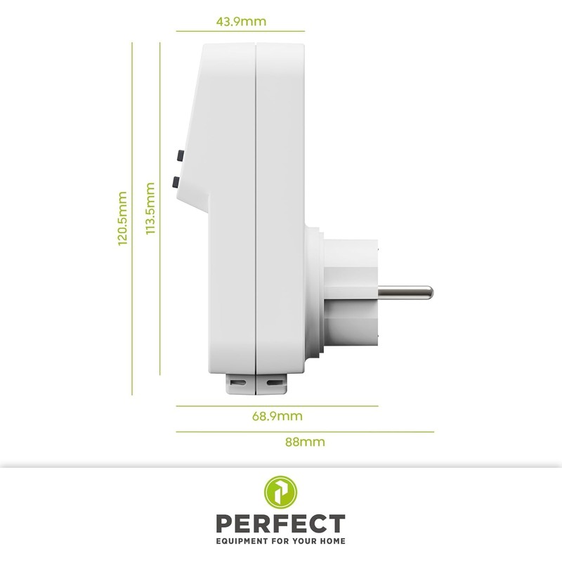 Perfect Socket Thermostat, Temperature Controller 230 V, Temperature Switch for Heating, Thermostat Socket, Cooling, Greenhouse, Terrarium, Frost Monitor, White