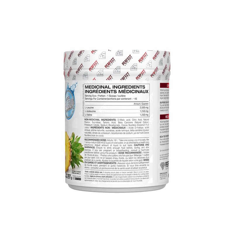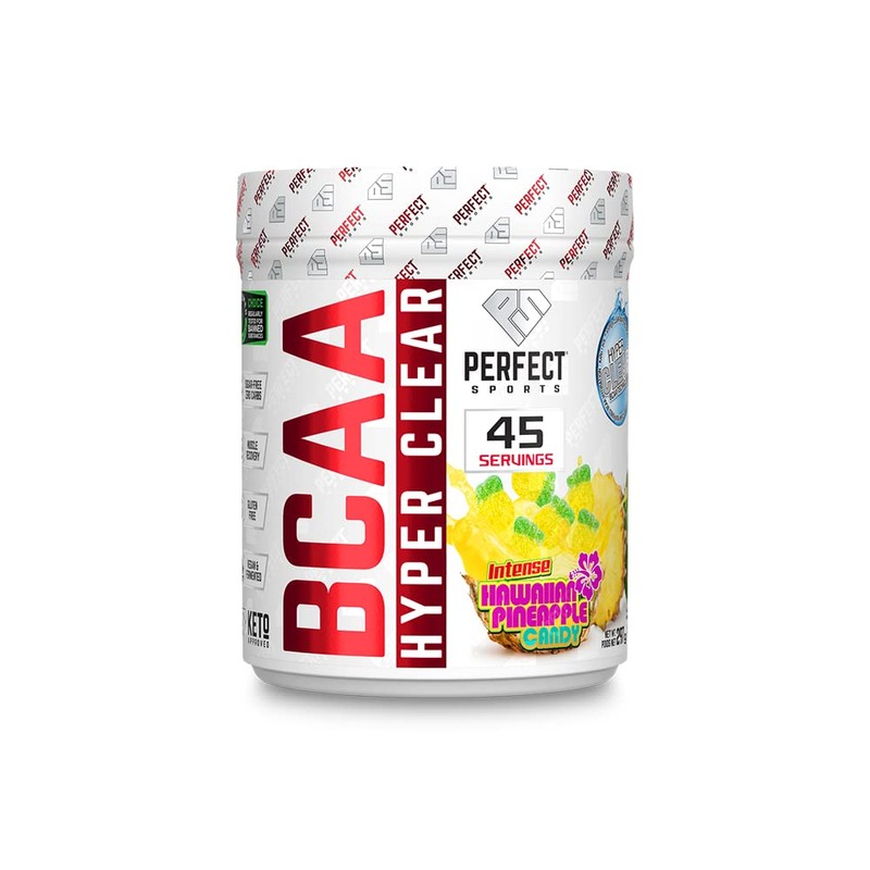 PERFECT Sports BCAA Hyper Clear, 5g Vegan BCAA - Intense Hawaiian Pineapple Candy (45 Servings, 297g)