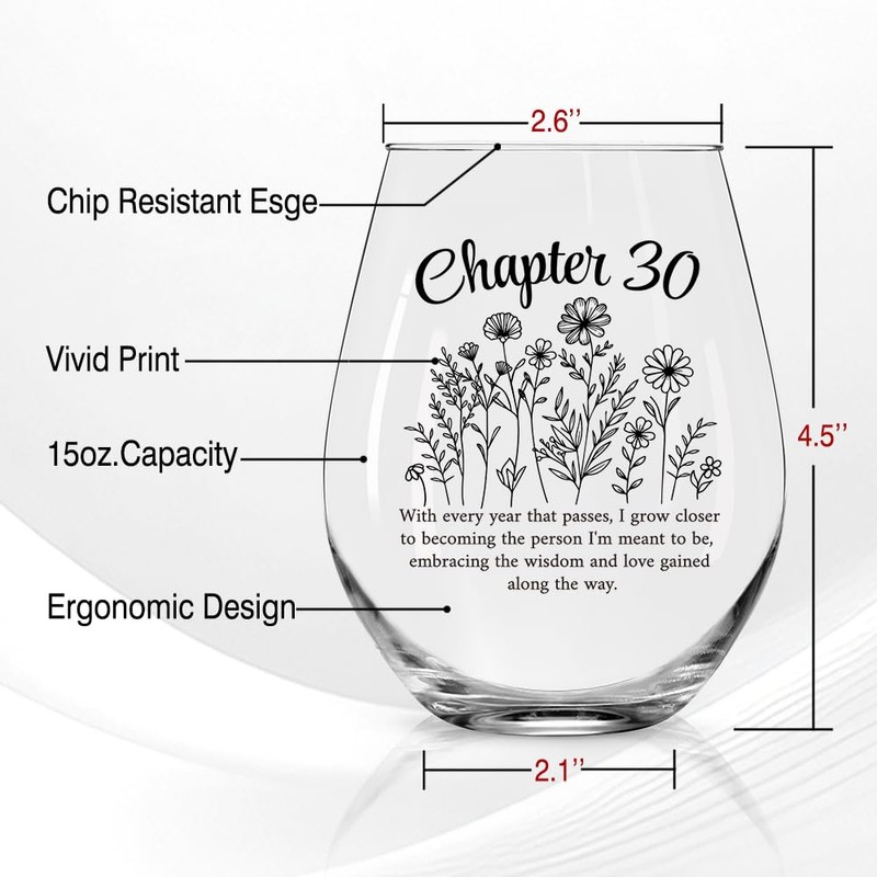 Perfectinsoy Chapter 30 Stemless Wine Glass, Time Commemorative 30th Wine Glass, Motivational 30th Birthday Gifts for Men Women Friends Coworkers Sister Brother Congratulation Party