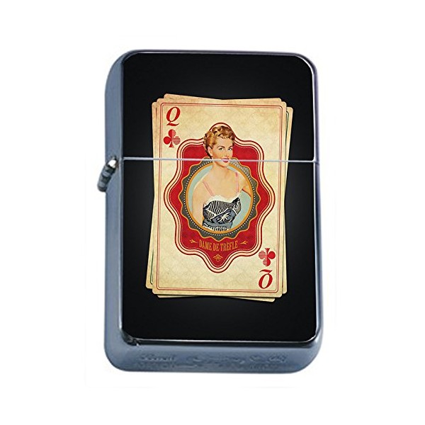 Perfection In Style Silver Flip Top Oil Lighter Vintage Playing Cards Design 009