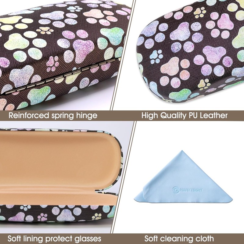 PERFECTSIGHT Hard Shell Eyeglasses Case, Protective Reading Glasses Case, PU Leather Eyeglass Case for Women Girls (Cat Paw)