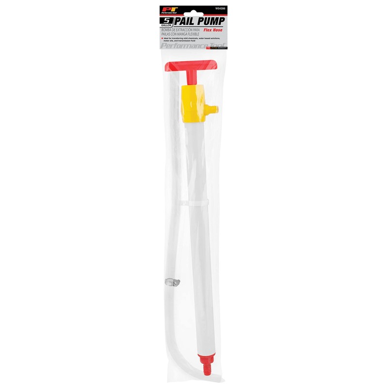 • EFFICIENT FLUID TRANSFER: The Performance Tool W54286 Flex Hose Pail Pump Dispenser is perfect for transferring a variety of fluids such as motor oils, water based solutions, and mild chemicals.