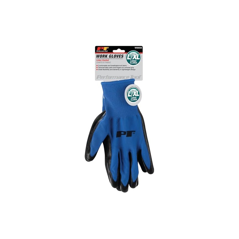 - PROTECT YOUR HANDS: These Performance Tool W89025 L/XL Latex-Coated Utility Gloves feature comfortable and breathable knit fabric.