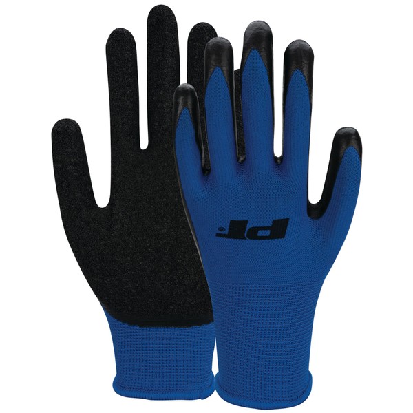 Performance Tool W89025 L/XL Latex-Coated Utility Gloves, Polyester Knit, Grip Coating, Flexible, Blue/Black