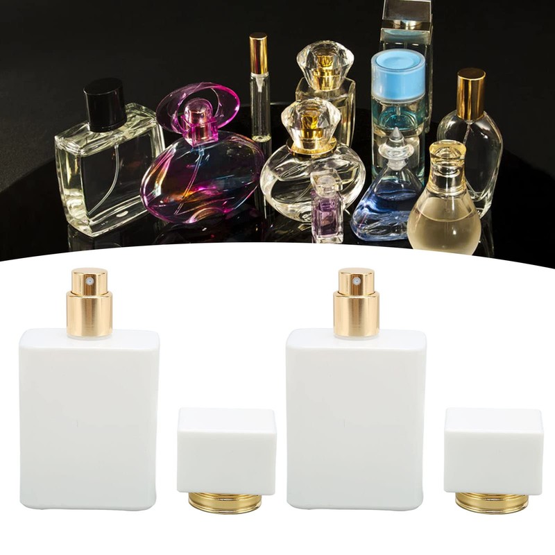 Perfume Atomizer Bottle Refillable Empty Glass Perfume Bottle, 2Pcs Empty Glass Perfume Bottle Large Capacity Golden Nozzle Glass Perfume Bottle Atomizer White 30Ml Refillable Empty Spray Perfume