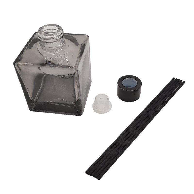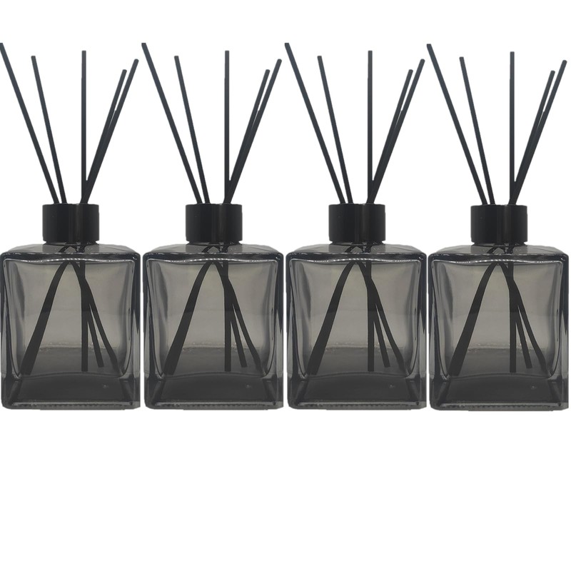 • Set of 4 reed diffuser bottle packing ,4pcs (glass body+stopper+black lid)+20pcs black Fragrance sticks, These are thick, heavy weight bottles square for diffuser liquid gift-giving