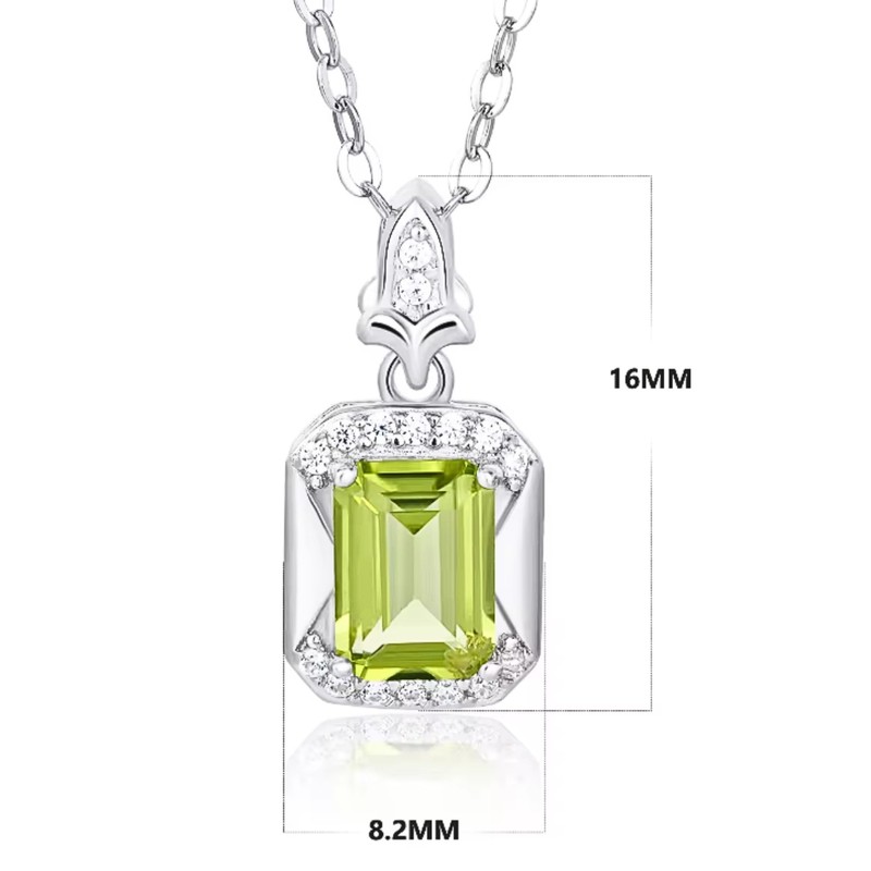 - ▪️Exquisite Design: A meticulously made design in which the Peridot solitaire has been expertly cut and facetted in a classic emerald cut. The under carraige of the pendant has had special attention to ensure that it allows maximum light refraction to enhance brilliance and sparkle.