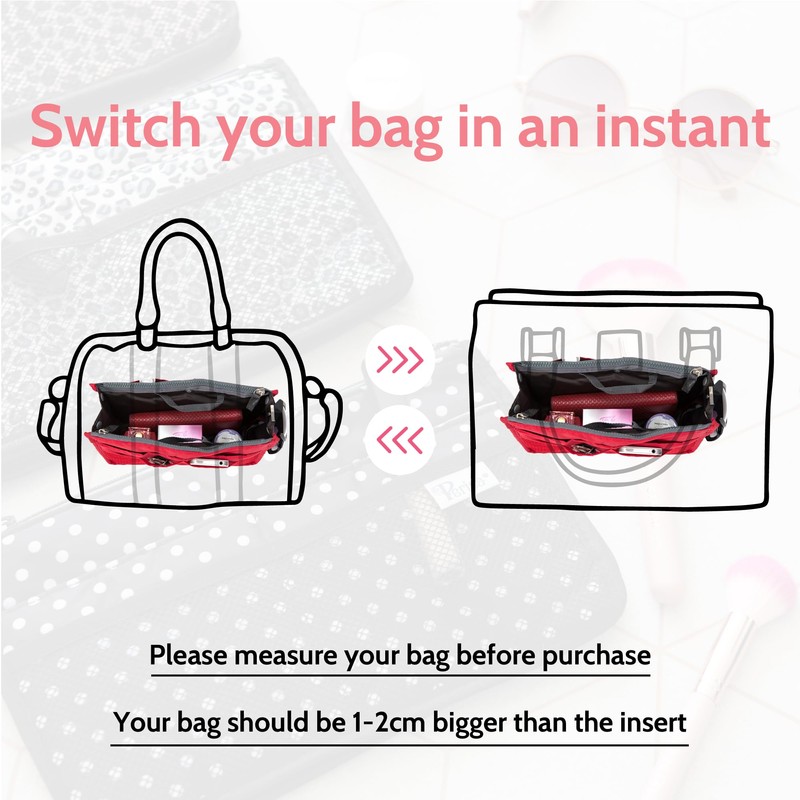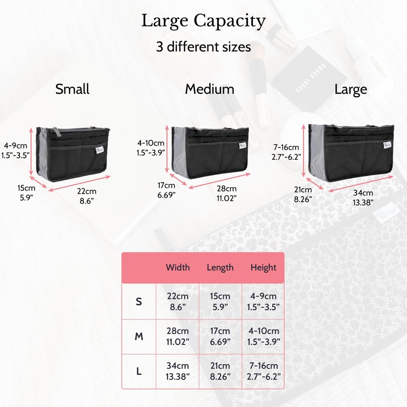 - Strong reinforced handles allow you to easily transfer your Periea bag organiser insert from one handbag to another, which means you no longer need to put through your bag looking for items or grab your belongings in another handbag when you are in a hurry.
