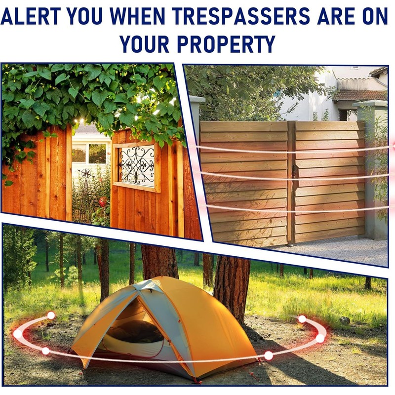 - Enhance Perimeter Security for Your Property : The trip alarm protects homes, campsites, and property by setting up a perimeter around the area. It can be deployed quickly across paths and entry zones, attached to doors, gates, and more - Deploy to keep coyotes from livestock; keep thieves out of your home and dangerous animals out of your camp site. Whether you are looking to have an alert for intruders or scare off animals - our perimeter trip alarm is perfect for you!