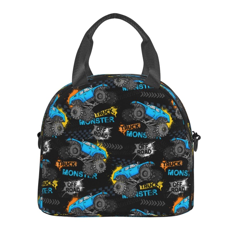 Perinsto Monster Truck Car 02 Unisex Reusable Lunch Bag, Eco-Friendly Aluminum Foil, 9 x 5 x 7.8 Inches, With Adjustable Shoulder Strap