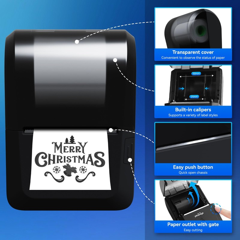 PeriPage PB20 Bluetooth Label Maker, 2-Inch Portable Thermal Printer for Small Business, Clothing, Logos & Stickers, Compatible with Phones & PCs (Black)