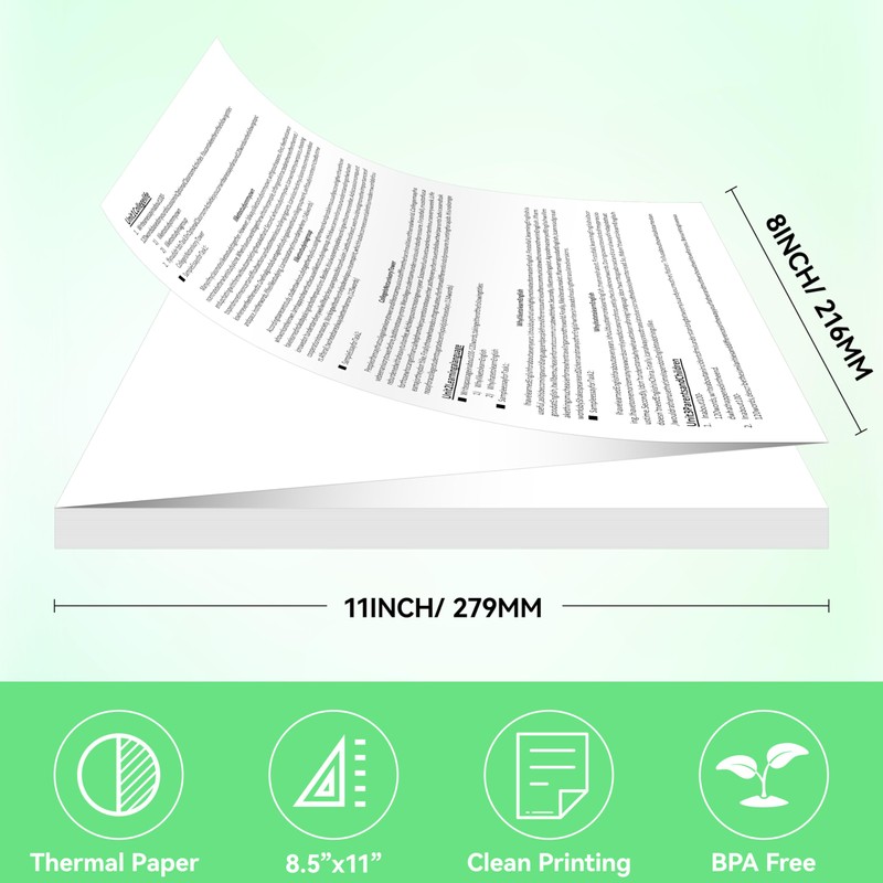 - High-Quality Thermal Paper--8.5''×11'' size, designed for US Letter format, ensuring compatibility with a wide range of portable thermal printers.
