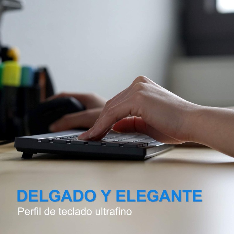 • DISEÑO COMPACTO - Mini teclado sin teclado numérico para escritorios pequeños y para tener el ratón más cerca.