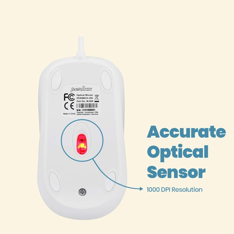 Perixx PERIMICE-209 P, ratón óptico PS2 con Cable con Rueda de Desplazamiento y 1000 dpi, Blanco (11832)