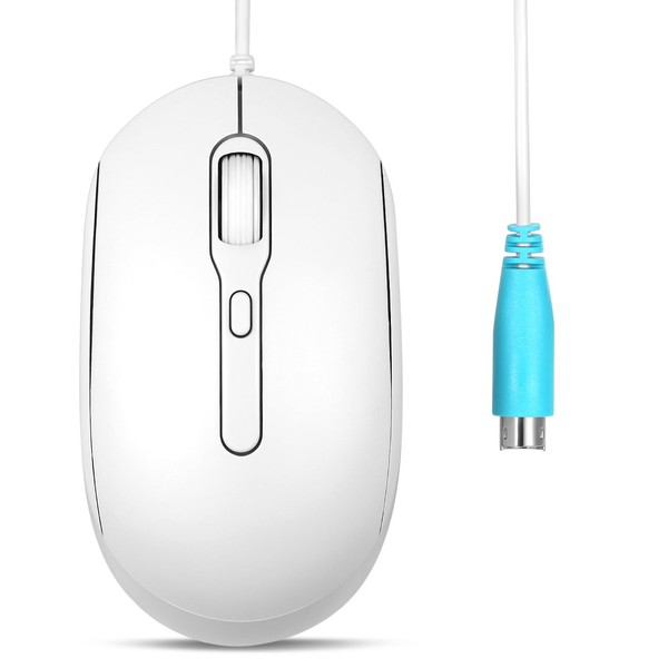 Perixx PERIMICE-222PW Wired PS/2 Optical Mouse - Long 5.9 Ft Cable - Optical 1200/1600/2000 DPI Design - White