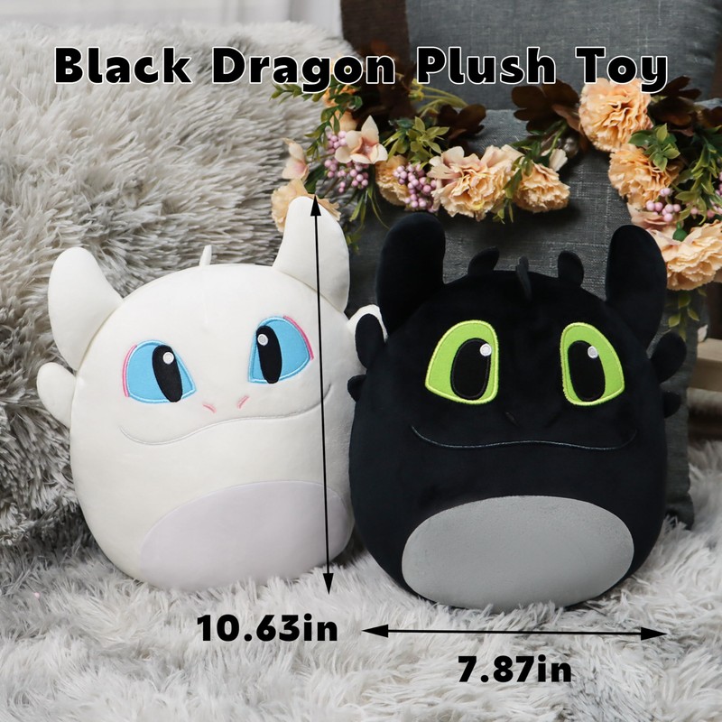 - Fantasy-Inspired Details – Designed with a charming black body, sleek tail, and embroidered facial features, this plushie captures the spirit of a gentle, loyal dragon without using licensed names or imagery.