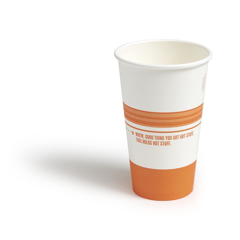 Perk PK54368CT Paper Hot Cup, 16 Oz., White/Orange, 500/Carton