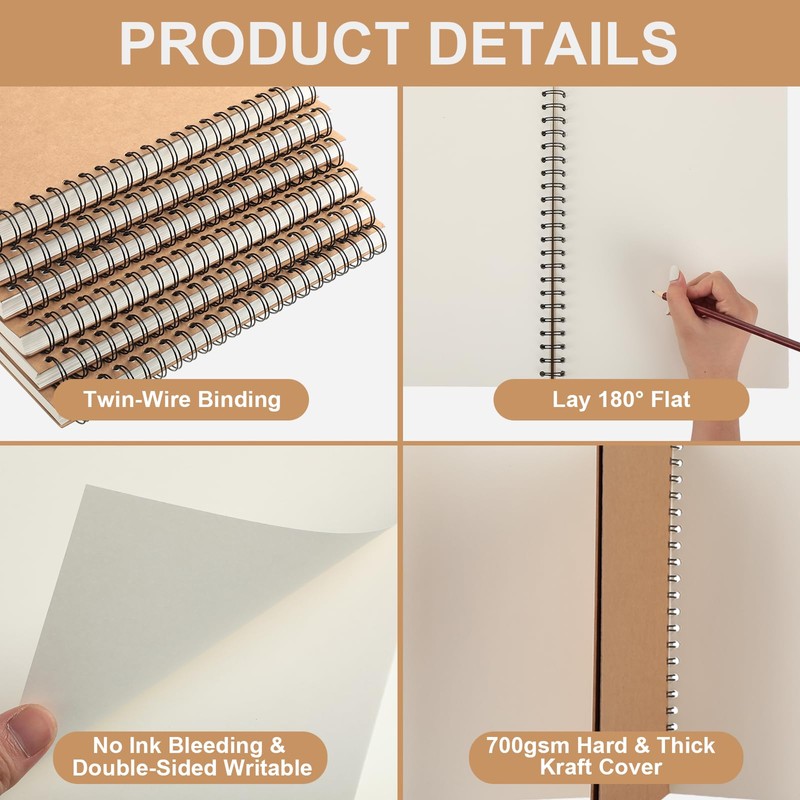 - Novelty Design: these spiral bound drawing pads are spiral bound, lays flat allowing you to draw, write or sketch without having to worry about any lumps or bumps, and you can turn pages smoothly and easily; Plus, every page is perforated, so you can detach it cleanly and safely