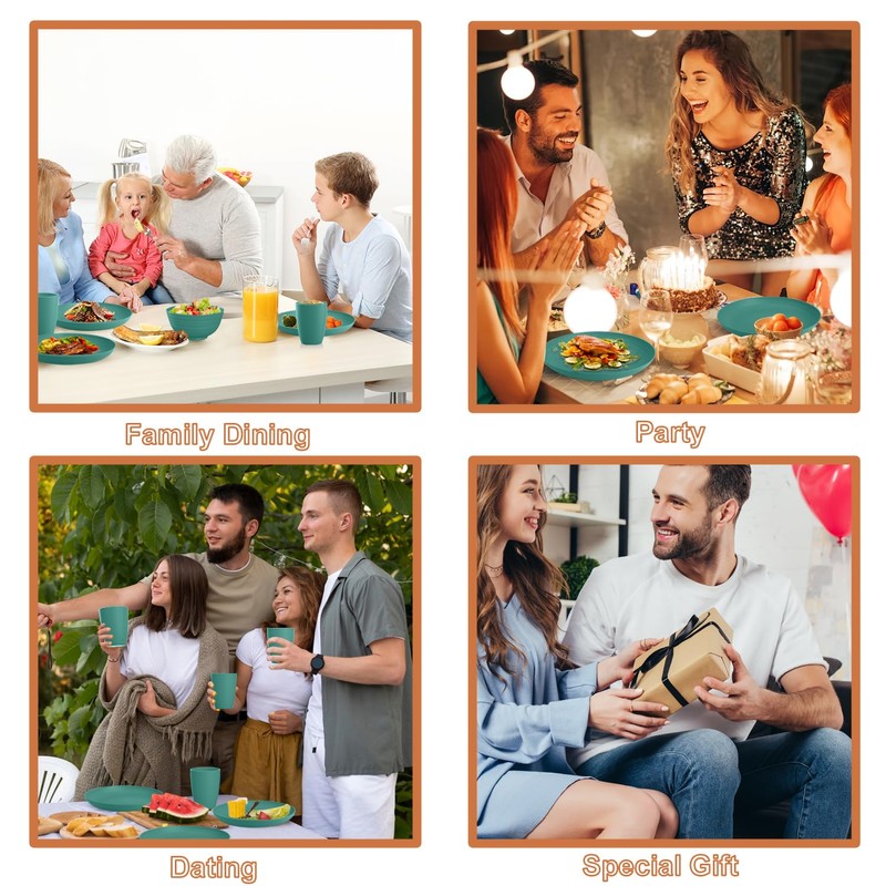 - Safe & Sturdy Material: Prioritize your family's health with our premium dinnerware set, Our plates set is made of wheat straw fiber and food-grade plastic - BPA-free - not only reusable, but also safe. Unlike plastic and porcelain which are fragile, these dishes are unbreakable.