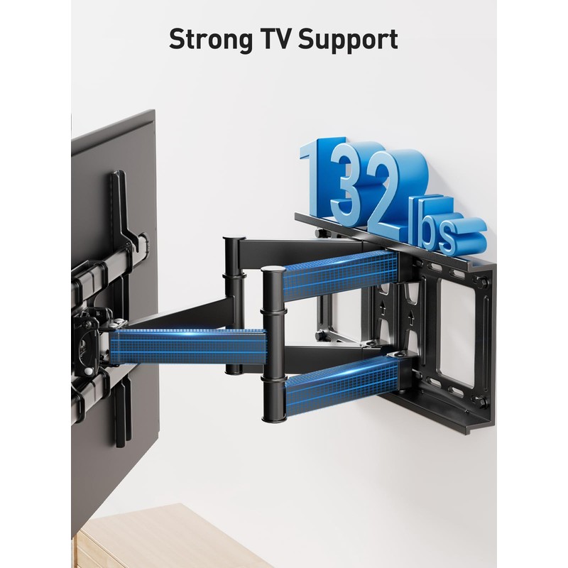 - Sturdy and Safe: Our TV wall mount is constructed from high quality steel materials, features with dual articulating arms hold TV up to 132 lbs. TV wall mount is tested with up to 4x the rated weight limit to prevent your TV from accidental bumping