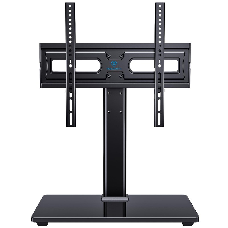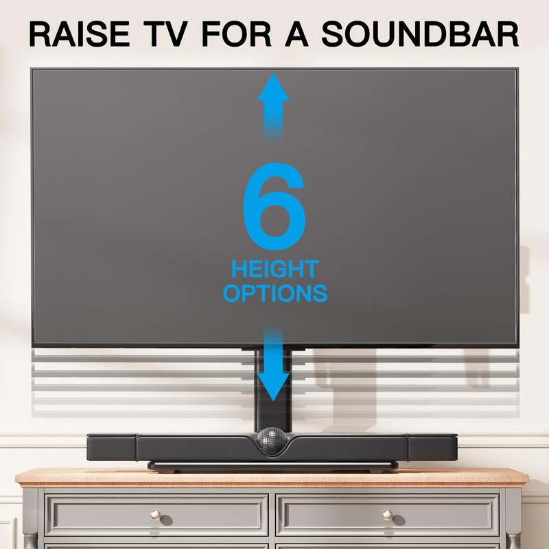 - STRONG AND DURABLE: This tabletop TV base is designed with strong steel material and a heavy-duty tempered glass base. Features cable management clips on the back of the unit to keep wires neat and organized.