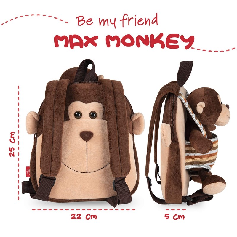 PERLETTI Cuddly Toy Backpack with Plush Removable Soft for Toddlers - Children's Backpack Plush Toy for Nurseries Baby Children 3 4 5 Years - Plush Toy Children's Bag - 22 x 25 x 3 cm, Monkey, Kids