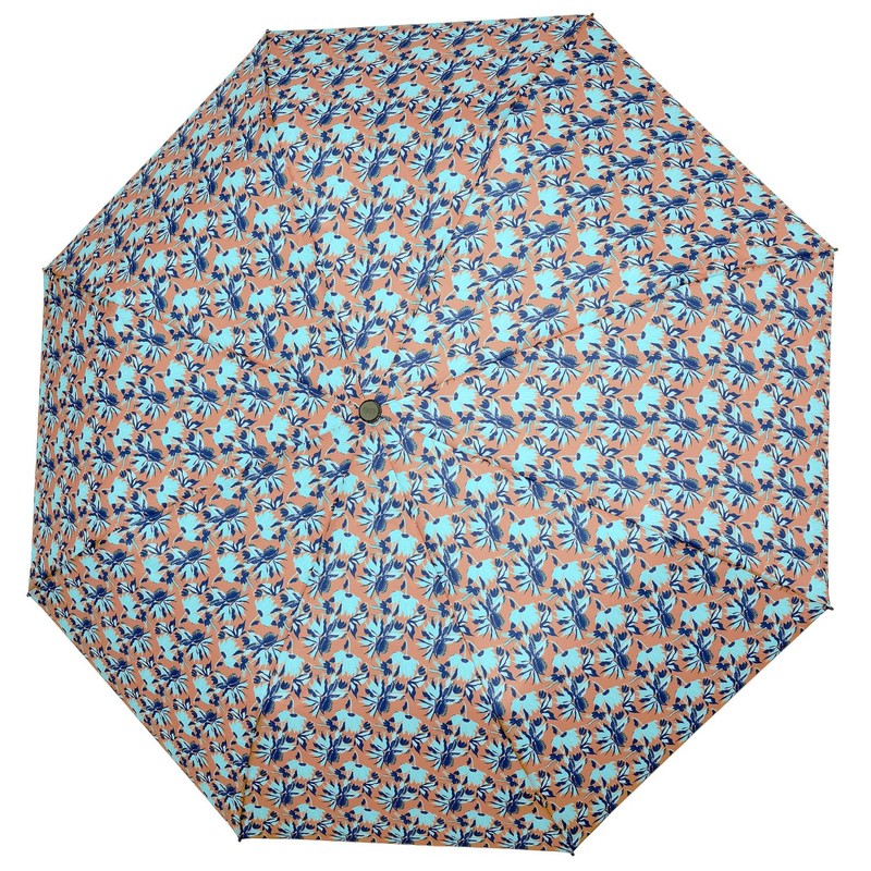 PERLETTI Multicoloured Automatic Umbrella for Women with Dots - Pocket Umbrella Compact Mini Lightweight Windproof - Rain Umbrella Small Travel - Diameter 96 cm, beige with flowers
