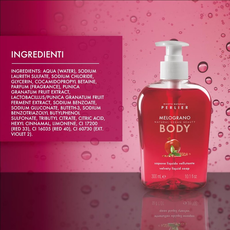 - Enriched with active pomegranate water, it gives softness without depriving the skin of essential moisture