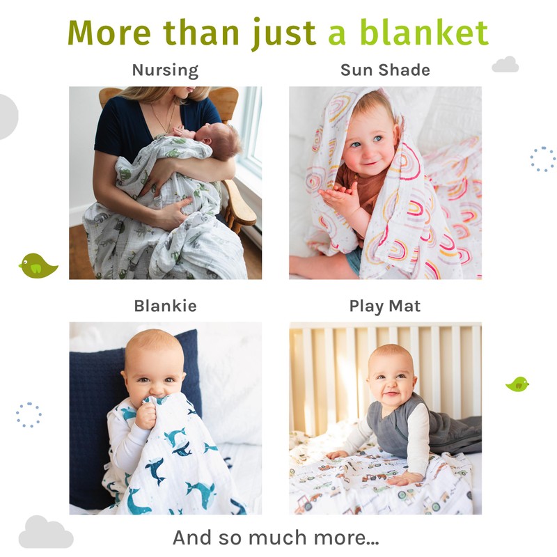 - Multi-use blanket. Great as swaddle blanket, nursing and stroller cover, sunshade, car seat cover, play mat, picture canvas, changing table cover and blankie!
