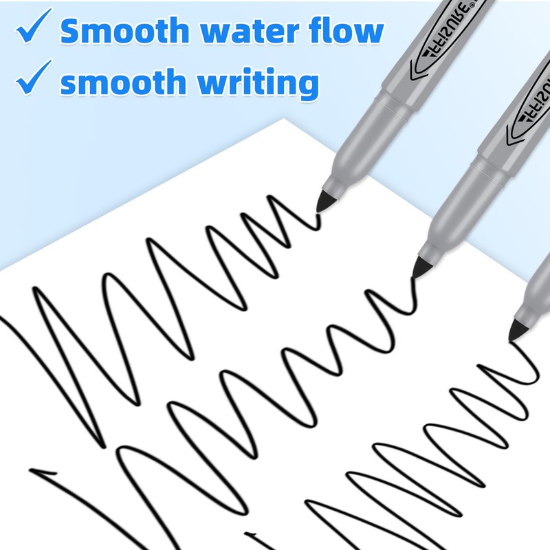 - WATERPROOF: the black permanent marker is smooth and waterproof. If the water is accidentally spilled on the written words, the words will not flower, and the black markers permanent is not easy to erase and fade