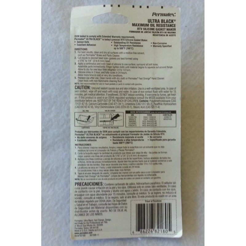 PERMATEX Ultra Black 82180 Max Oil Resistance RTV Silicone Gasket Maker 3.35oz