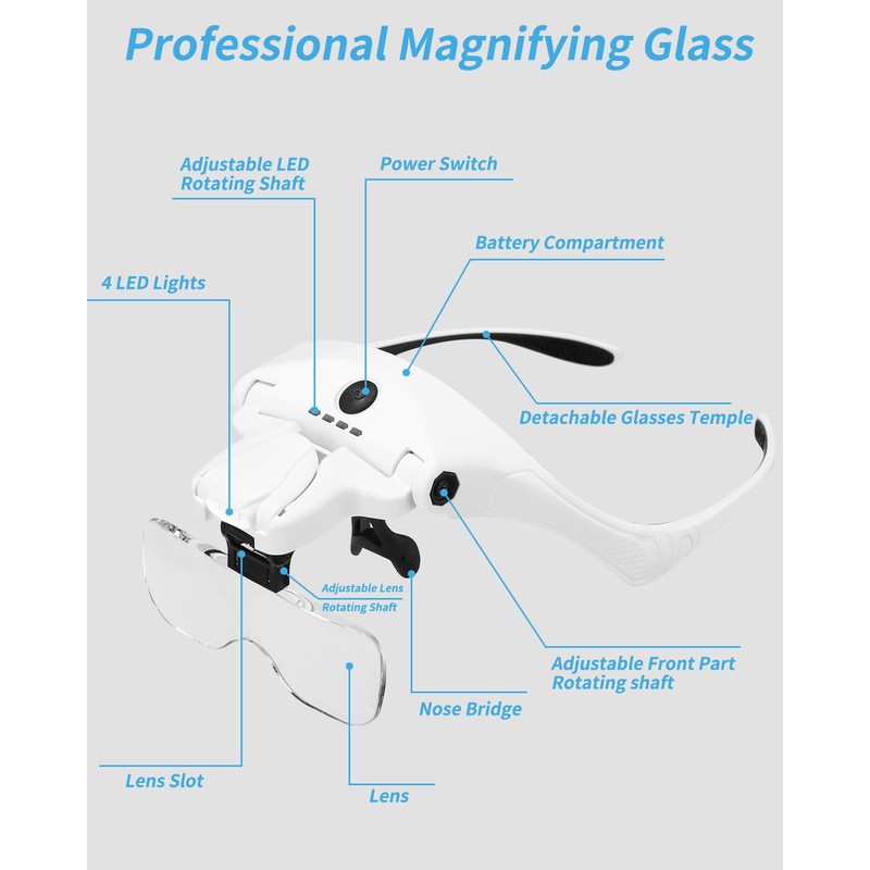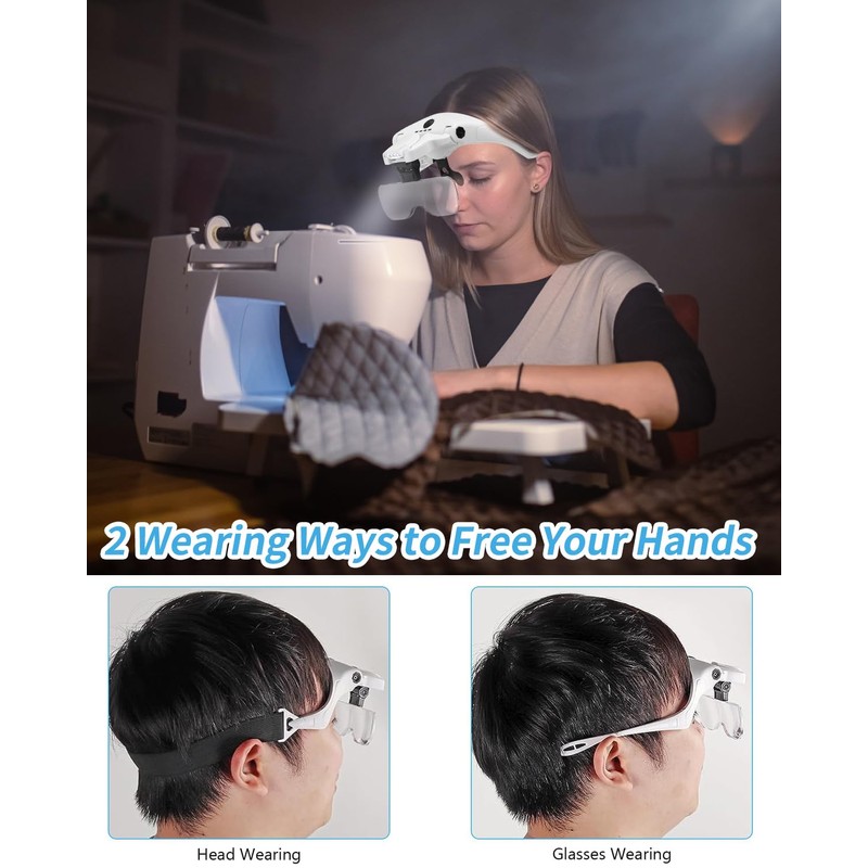 - Bequem und einfach zu bedienen: Neu gestalteter Brillenrahmen und vollständig mit Gummi umwickelter Nasenrücken, der die Belastung des Nasenrückens erheblich verringern kann. Tragen Sie es abwechselnd als Brille oder Stirnband. Der mitgelieferte Kopfgurt lässt sich ganz einfach anbringen, um einen sichereren Sitz zu gewährleisten.v