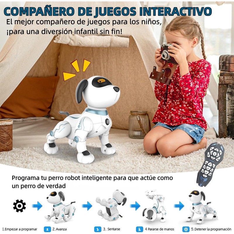 • 【INTELIGENTE JUGUETE PROGRAMABLE】puedes programar las acciones como quieras, entonces el perro repetirá lo que programaste y ver cómo realiza sus solicitudes como un profesional.Es un juguetes muy educativo que ayuda a desarrollar la creatividad y la capacidad de resolución de problemas de los niños.