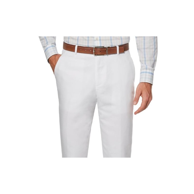Perry Ellis Men's Regular Essentials Linen Dress Pant, Modern Fit, Solid, Lightweight (Waist Size 29-42), Bright White Twill, 32W x 34L