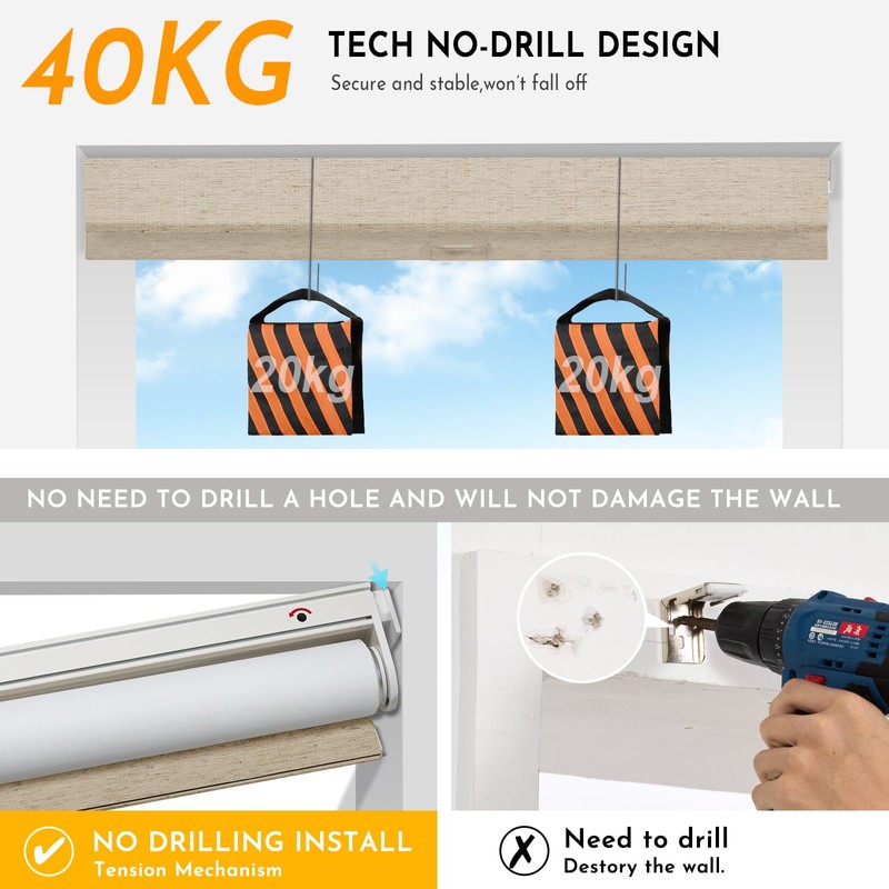 - 【Linen Fabric & Metal accessories】LINEN SERIES,100% Blackout. It can reduce glare and minimize damaging UV rays, protecting your furnishings while also keeping your home cool. And it allows you to control the light coming into your home and provide privacy. Save energy costs by cutting out heat and blocking harmful UV. The good-quality cassette is better stressed and offers more sizes to choose from, featuring a fabric insert cassette and bottom rod for a cohesive look.