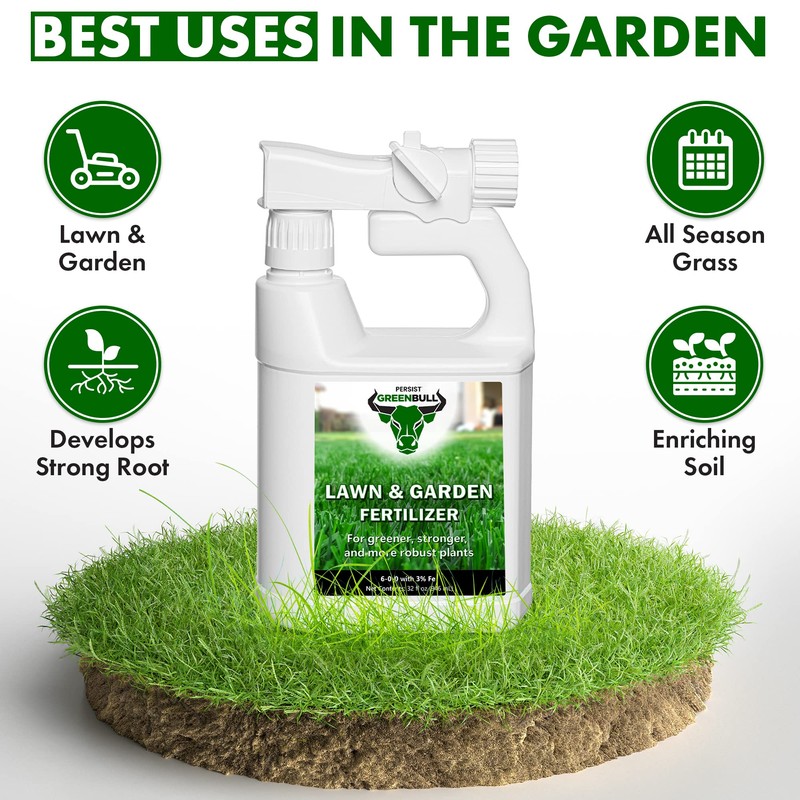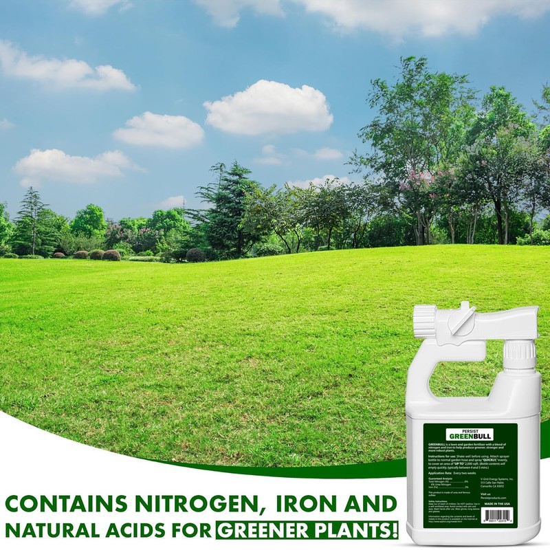Persist Green Bull - 32oz Liquid Grass Fall Fertilizer Sprayer for Lawn and Garden Soil - Naturally Enhances Green and Creates Nitrogen Rich Plant Soil, Naturally Based Fertilizer for Greener Plants