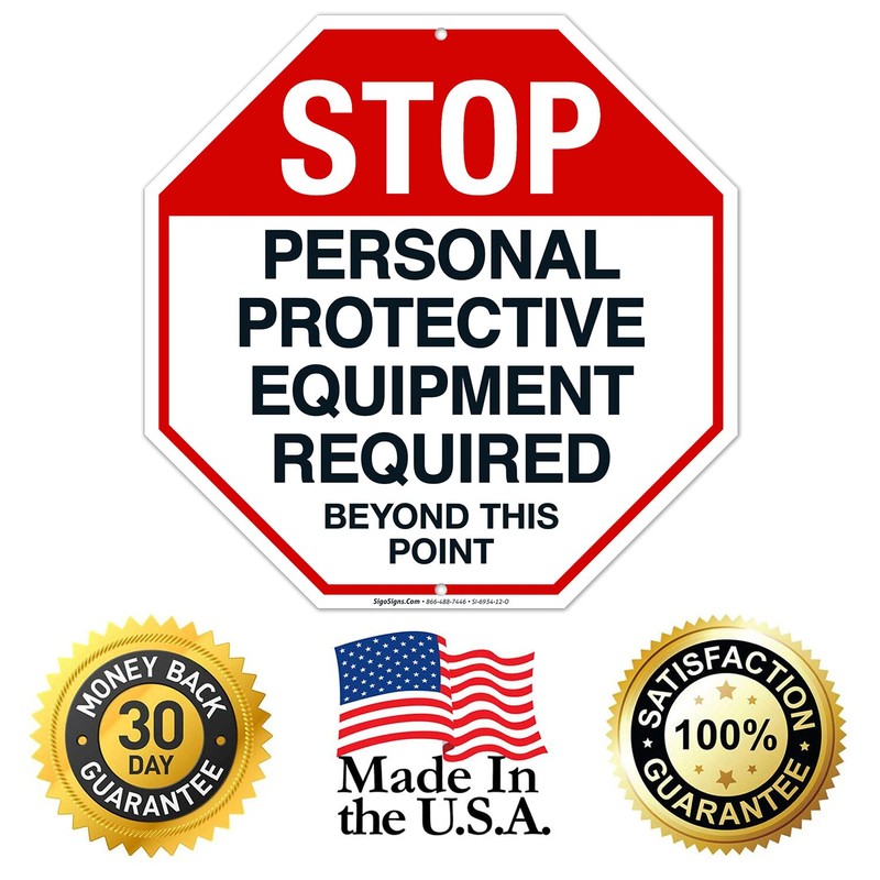 Personal Protective Equipment Required Sign, 12x12 Inches, 55 mil Thick HDPE (high Density polyethylene), Made in USA