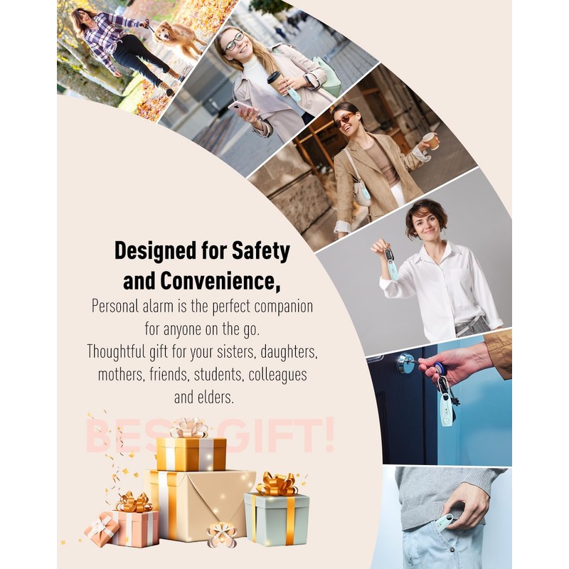 • [A PRICELESS GIFT]: Safety alarm for women is a priceless gift idea that can bring peace of mind to your loved ones, sisters, daughters, mothers, friends, students, colleagues and elders in your community. This self protection keychain alarm is a great addition to any self defense kit for women, but we hope that you never have to use it