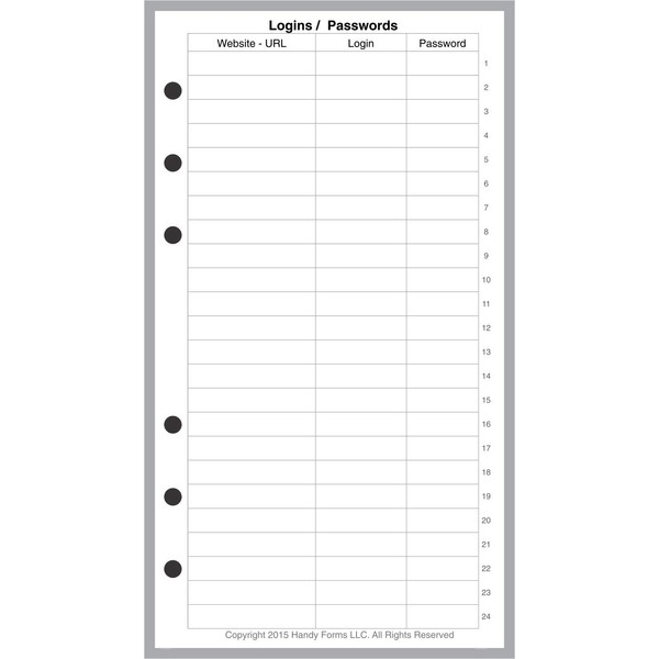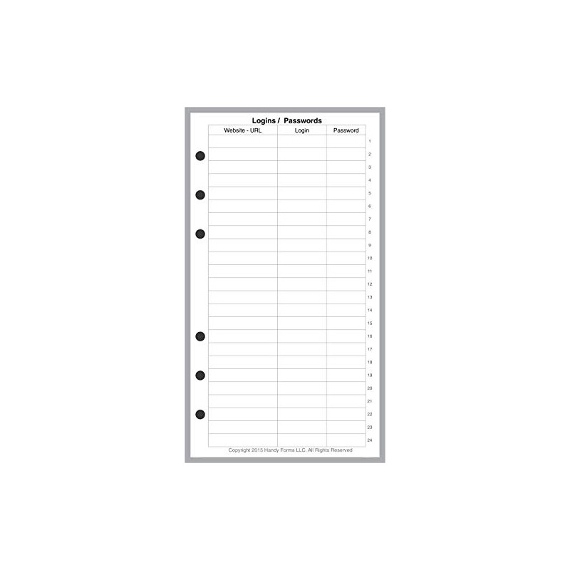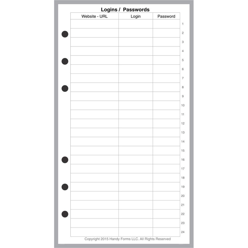 Personal Size Login Password List, Sized and Punched for Filofax Personal Notebook (3.7" x 6.75")