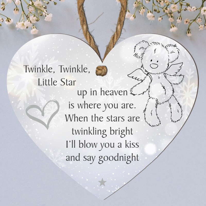 - 🌟 Heartfelt Memorial Message: The plaque features the comforting and sentimental words, "Twinkle, Twinkle, Little Star, up in heaven is where you are." This touching message helps keep the memory of a lost loved one alive, offering comfort and solace during difficult times of grief and remembrance.