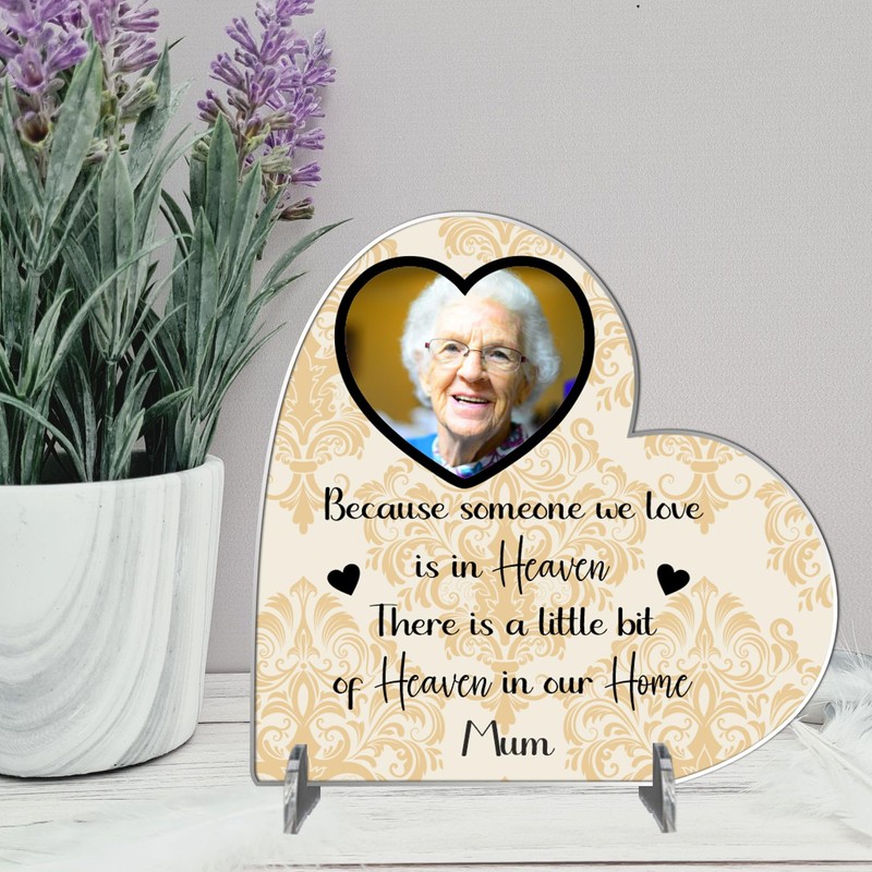 - 📸 Heartfelt Memorial: Honour your loved one with our Personalised Bereavement Photo Plaque. Engraved with the touching quote, "Because someone we love is in Heaven, there is a little bit of Heaven in our home," this plaque adds a meaningful element to any room and serves as a beautiful reminder of the loved one's impact.