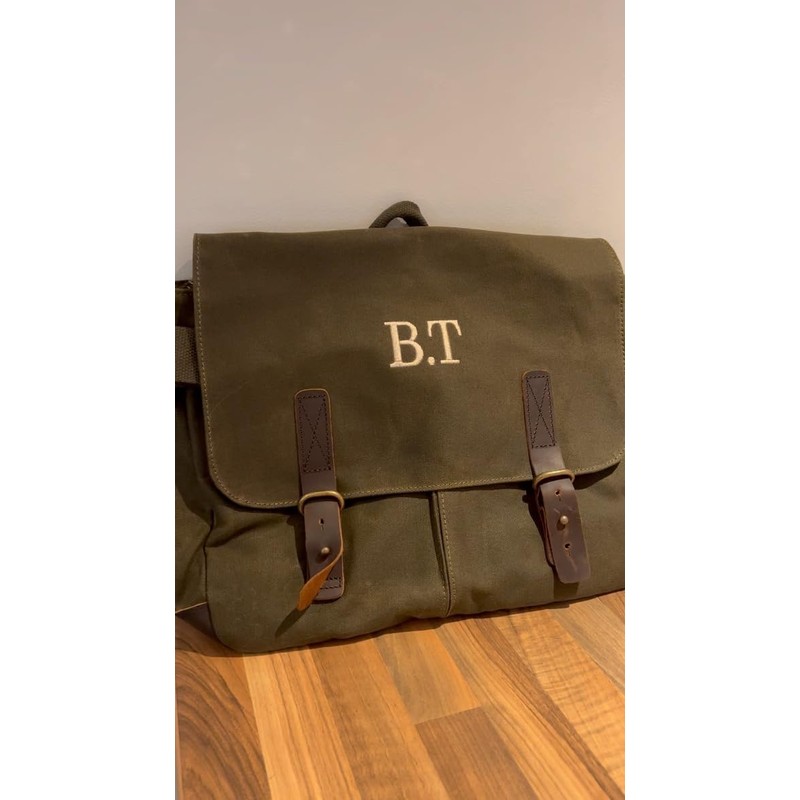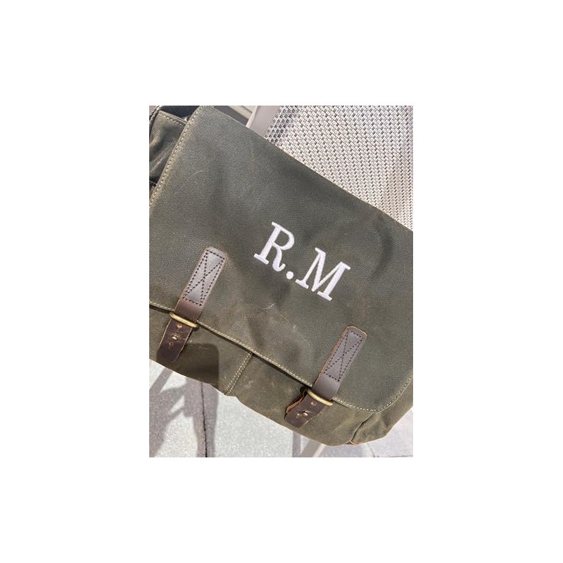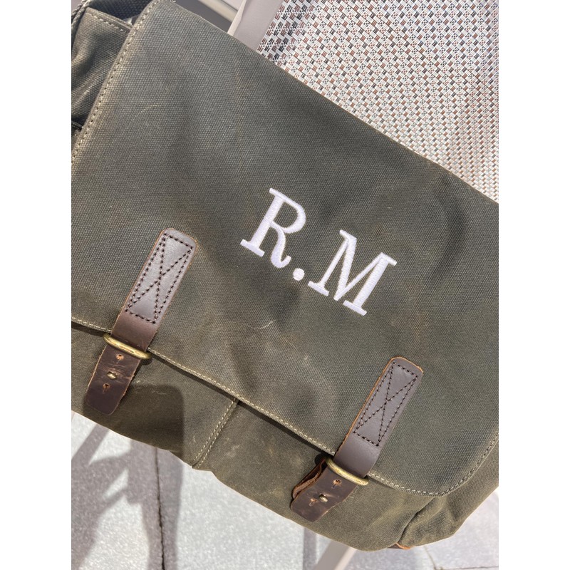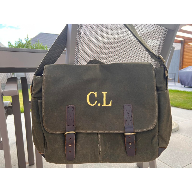 Personalised Embroidered Olive Green Waxed Canvas Messenger Laptop Bag for work, college, school including P&P