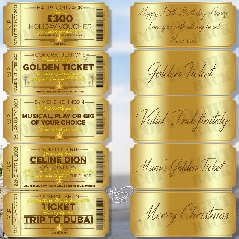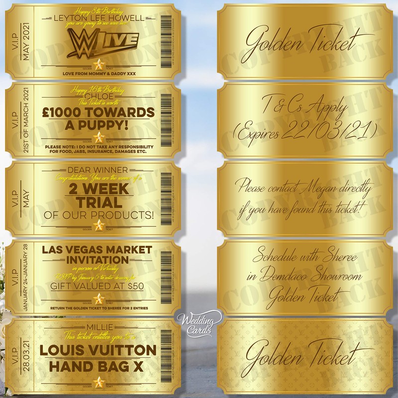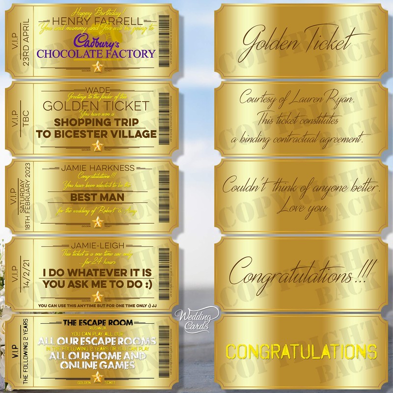 Personalised Gold Golden Invitation Christmas Wedding Birthday Surprise Lapland Santa Reveal Ticket
