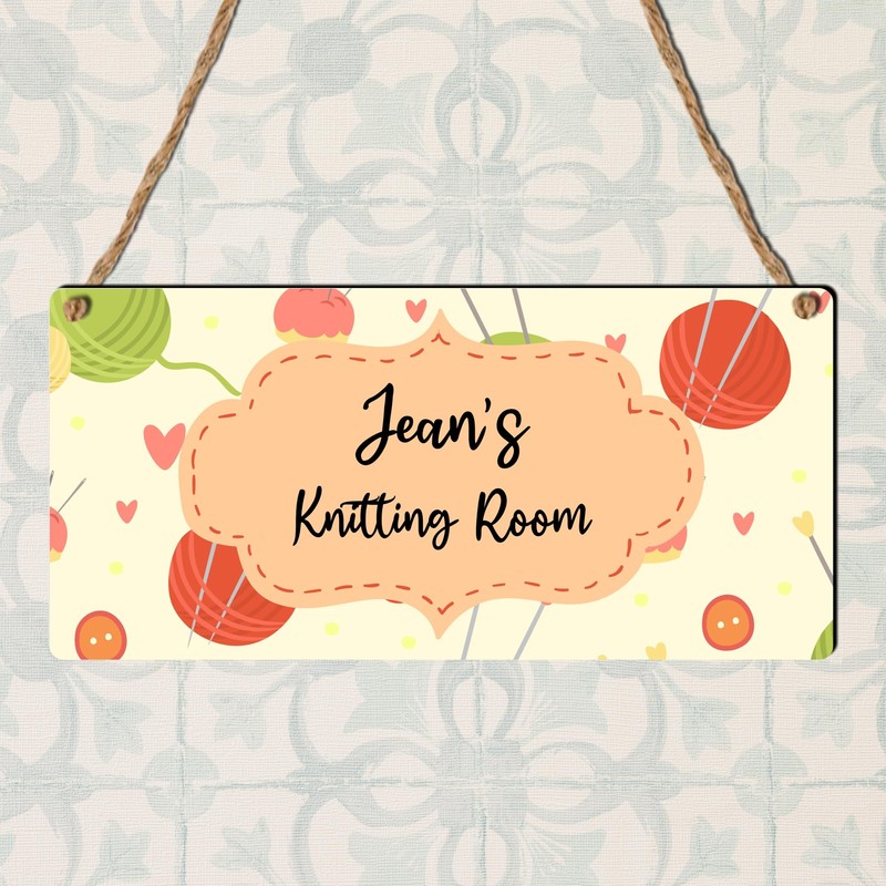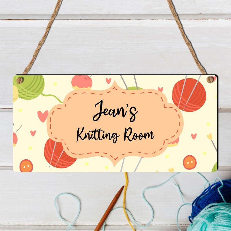 Personalised "Knitting Room" Sign - Custom Name Craft Room Plaque for Knittin...