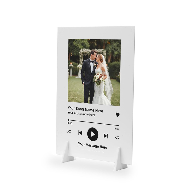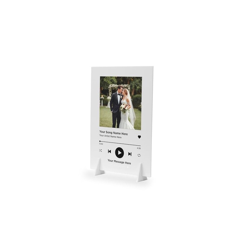 Personalised White Music Plaque with Photo & Stand - Custom Song, Artist & Message - White Acrylic Music Gift A6 (104mm x 148mm) - Custom Photo Song Display Gift for Him, Her or Couples